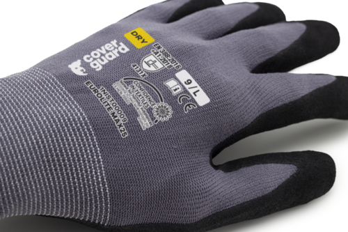 Gants EUROLITE MAX25 tricot à base de polyamide gris, jauge 15, enduction palmaire en sandy nitrile noire,